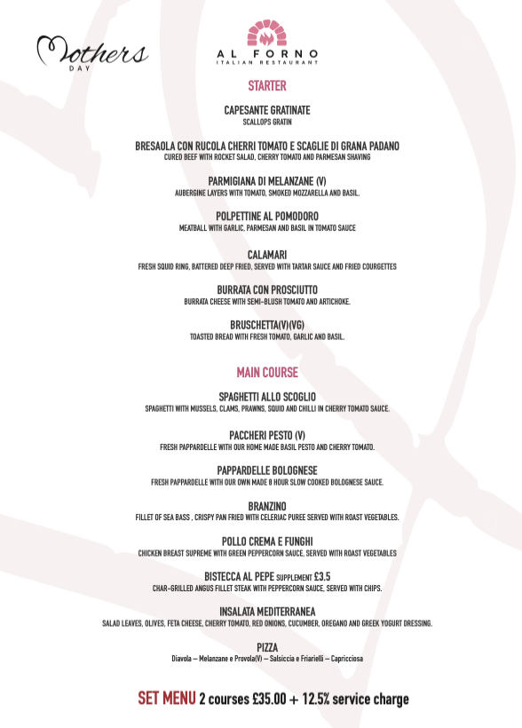 New Al Forno Xmas Day Menu & New Year’s Eve ❄️ 🎄 🎉 🍾 💃 🕺